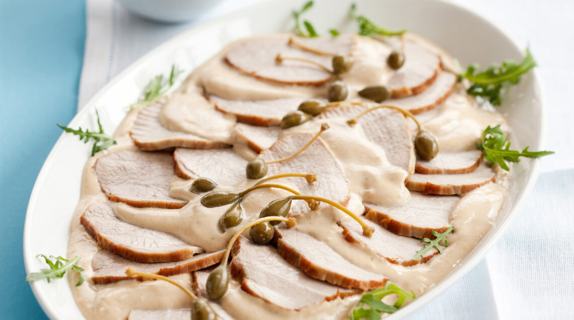 Una ricetta della tradizione piemontese, a base di sottilissime fettine di magatello, lessato, fatto raffreddare e tagliato molto fine. La carne, ricoperta da una salsa a base di maionese, tonno, capperi e acciughe, deve risposare a lungo prima di finire in tavola come uno dei più ghiotti antipasti