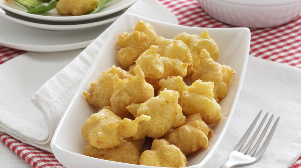 Bocconcini croccanti e gonfi a base di farina di mais e formaggio. La frittura leggera ne fa un goloso antipasto