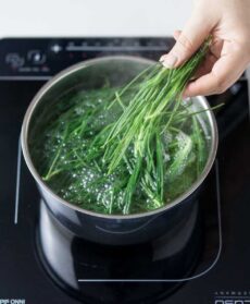 Nel frattempo lava molto bene gli agretti privati delle radici e sbollentali in abbondante acqua non salata per una decina di minuti. Dovranno essere teneri.
