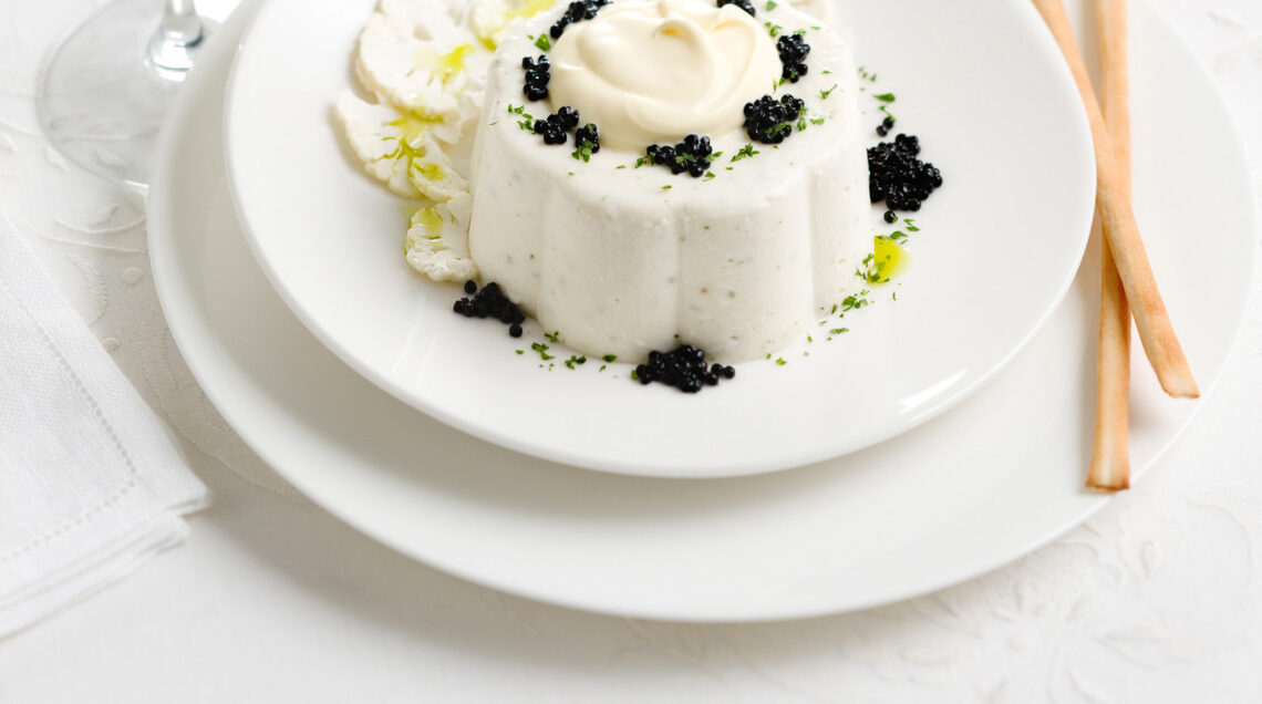 Ingredienti eccellenti per questi antipasti raffinati, destinati alla tavola delle Feste. Candito cavolfiore, panna cremosa e il tonno elegante del caviale si trasformano in piccole e candide bavaresi, decorate con caviale, audace nel sapore e nel colora in forte contrasto con quello cangiante degli sformatini. Un antipasto nato per stupire, appagare il senso estetico dell'impiattamento e coccolare il gusto.