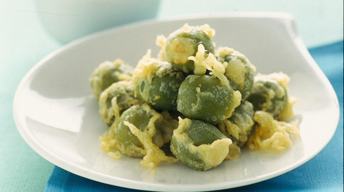 1) Immergi le olive farcite nella pastella per i frittini e friggile in abbondante olio di arachide caldo.