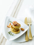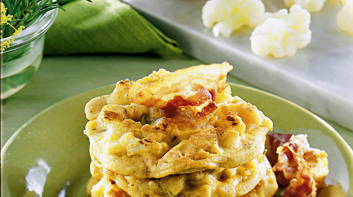 La pastella è preparata con farina di ceci per risultare morbida ma corposa, gentile con i sapori decisi del cavolfiore e della pancetta. Le schiacciatine, cotte in padella con poco olio, sono pronte in pochi minuti. Profumate con rosmarino, si accompagnano con sott'olio e sottaceti, formaggio e salame.