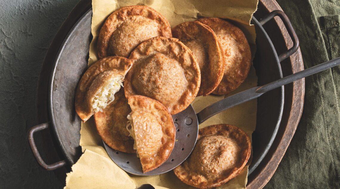 I dischi di sfoglia di segale racchiudono un ripieno rustico di crauti e panna. Super croccanti dopo la frittura, sono uno sfizioso antipasto o una golosa merenda