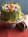 4 Lavate le verdure, cuocetele a vapore, fatele raffreddare e conditele con olio e sale. Versate la farcitura nel guscio, completate con le verdure, le decorazioni di pasta e servite.