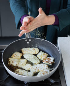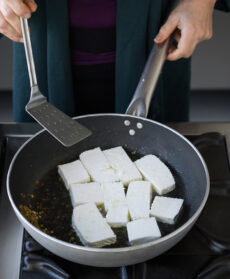 Tagliate la tuma a fette spesse e sistematele nella padella, fatele friggere a fuoco alto, da una parte e dall'altra, finchè risultano ben dorate.