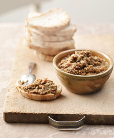 Affetta il pane toscano, abbrustoliscilo, bagnalo leggermente con il vin santo rimasto e spalmalo con la salsa di okara preparata.