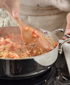 Lascialo evaporare e aggiungi il pomodoro passato.