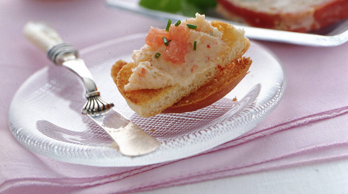 2) Una volta cotti, scolali, lasciali raffreddare ed elimina il carapace, poi priva il peperoncino dei semi e tritalo finemente. Ora prepara la crema di gamberi, quindi lavora il burro fino a ottenere una cremina, poi frulla le code di gambero con il succo di un pompelmo rosa e unisci la purea ottenuta al burro.