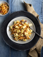 Anche se la crema di gamberi al pompelmo rosa dà l’idea di una specialità da veri gourmet, soprattutto per l’utilizzo apparentemente inusuale del pompelmo, va detto che invece capita spesso che gli spicchi di pompelmo rosa integrino svariate pietanze differenti dai semplici dessert. Nato dall’incrocio tra il pomelo e l’arancio Moro, il pompelmo rosa in origine era leggermente diverso da quello attuale, infatti risultava meno pigmentato, aveva la buccia più spessa e la polpa meno zuccherina. Per questo motivo si ipotizza che l’evoluzione stia conducendo il pompelmo rosa verso una specie autonoma di Citrus, anche perché le caratteristiche tipiche dell’incrocio da cui ha avuto origine si sono dimostrate facilmente ripetibili e conservabili nel tempo.