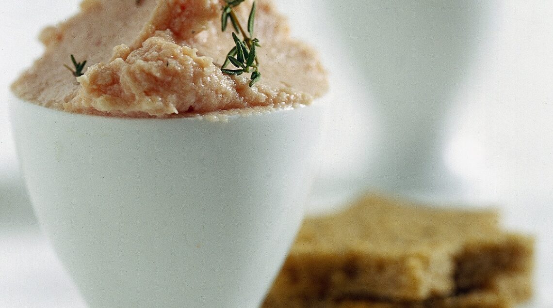 4) Servite la mousse cosparsa con foglie di timo e accompagnata da fette di pane nero, distribuendola, se vi piace, in piccoli portauova.