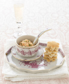 Poco prima di servire la mousse di salmone affumicato, decoratela con sfiziosi steli di erba cipollina tagliuzzati e accompagnatela insieme a dei gustosi crostini di pane tostato.