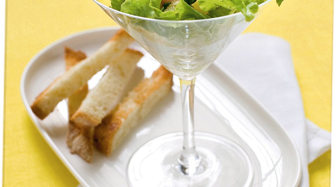 4) Fodera 4 coppe con l'insalatina lavata e asciugata, adagiavi il cocktail di gamberi e decora con il prezzemolo ben lavato e tritato.