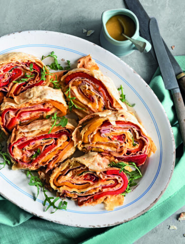 Il pane carasau, tipico della regione sarda, può essere sfruttato in mille modi differenti per creare antipasti scenografici e ricchi di fantasia.