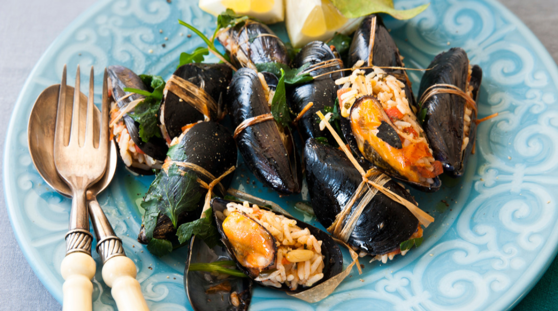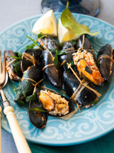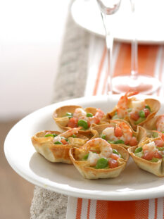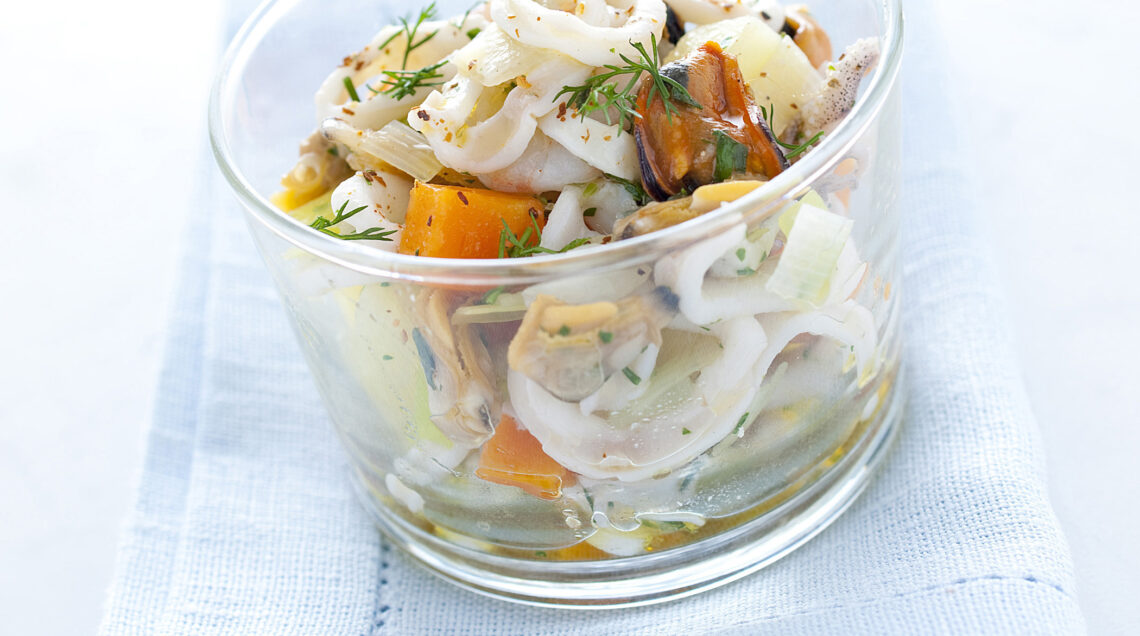 Insalata di stoccafisso su crema di patate nel bicchiere
