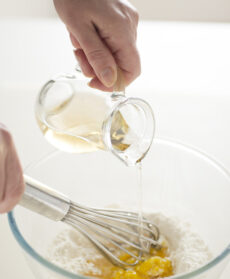 Sgusciate le uova in una ciotola, aggiungete la farina mescolata con un pizzico di sale fino, il lievito e un filo di olio extravergine e mescolate con la frusta a mano versando gradualmente il vino. Fate riposare la pastella in frigo per 30 minuti.