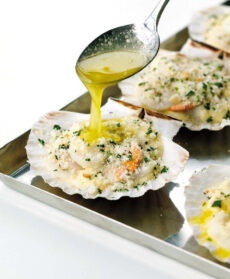 Tra gli antipasti dei giorni di festa e, in generale, per i menu delle occasioni speciali, non possono mancare le capesante gratinate, elegantemente servite delle loro scenografiche conchiglie. In questa ricetta classica si utilizza la salsa Mornay, arricchita con gruyère grattugiato.