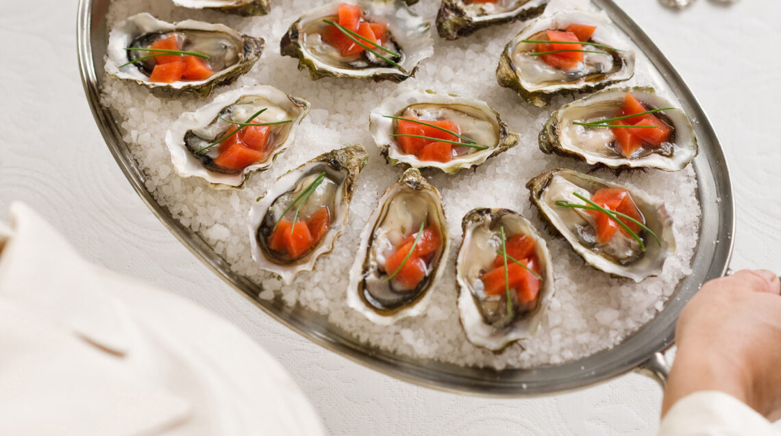 3) Aromatizza con erba cipollina tagliuzzata e gusta subito le tue ostriche con gelatina d'arance accompagnate con verdicchio spumante.