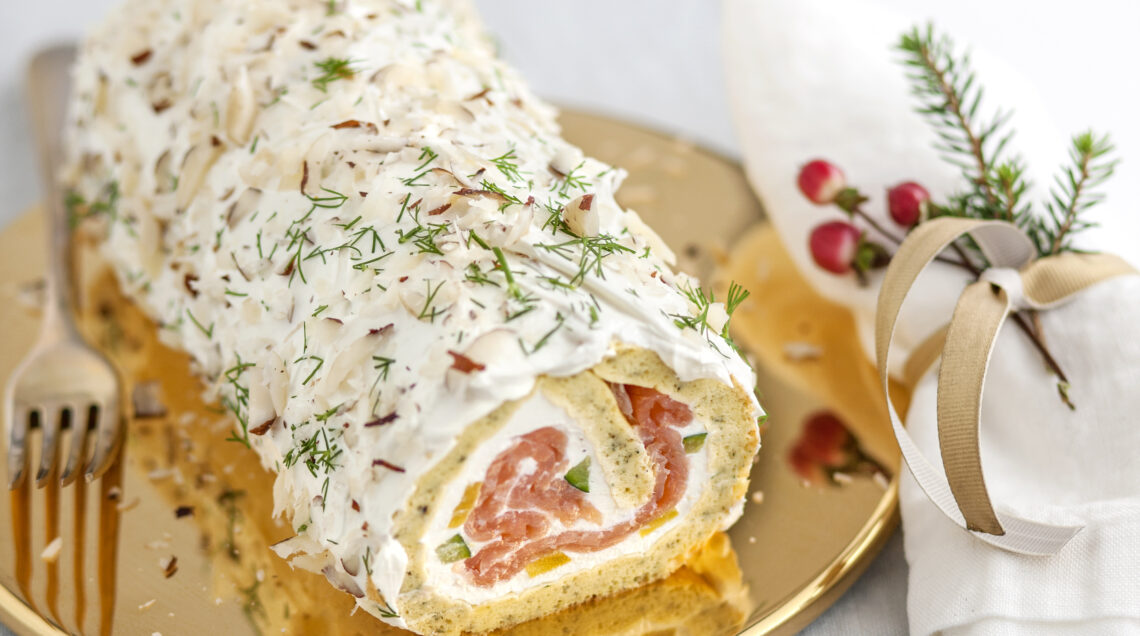 Il tronchetto di Natale, Bûche de Noël, è un dolce natalizio, diffuso soprattutto in Francia e nei Paesi francofoni, che ricorda il ceppo di natale. Solitamente fatto con il bisquit, la pasta biscotto, è riempito con marmellata e ricoperto di cioccolato o crema di caffè e glassa. La fantasia non si è trattenuta sulle molte varianti, anche salate come quella da noi proposta. Un tronchetto salato è una proposta originale e molto gustosa da servire come entrée di un pranzo formale.