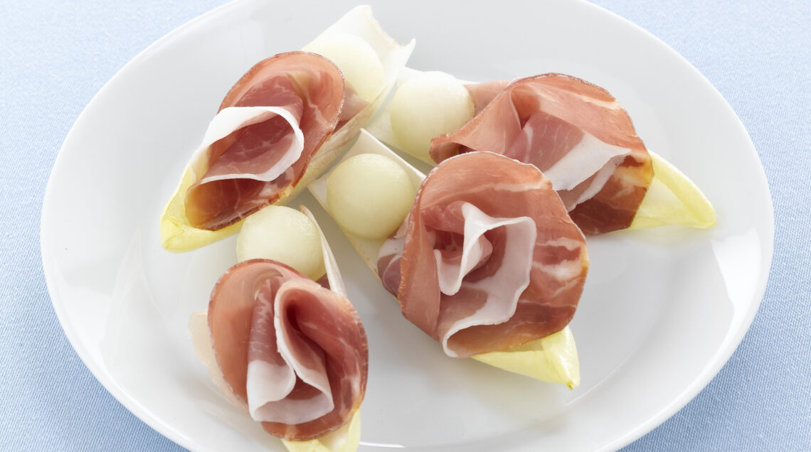 1) Per preparare la nostra ricetta delle barchette di belga al prosciutto crudo, devi anzitutto sfogliare delicatamente i cespi di invidia belga e lavarli. Dopodiché disponi le foglie a mo’ di barchette, arrotola le fette di prosciutto e distribuiscile nella belga.