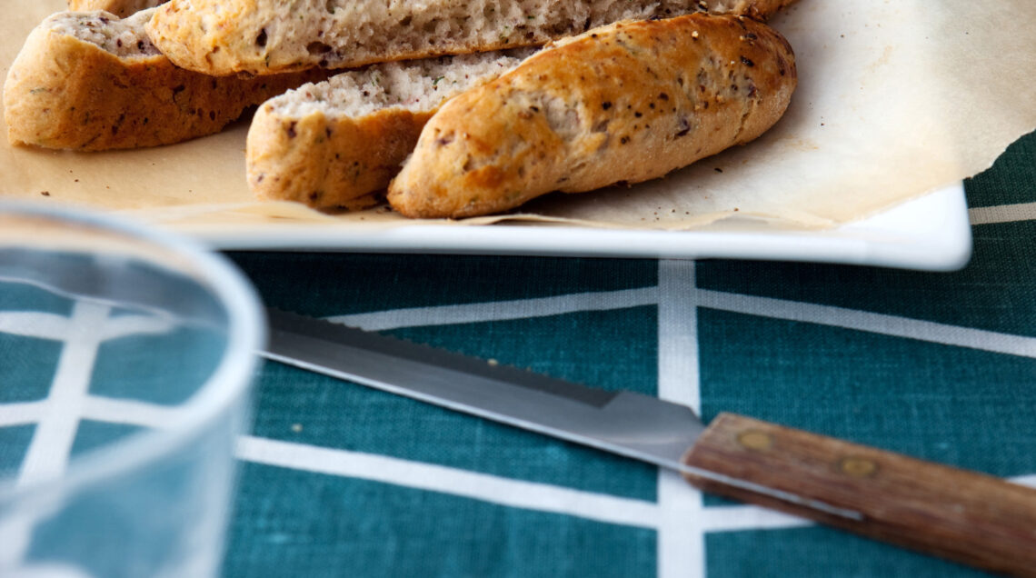 1) Per preparare la ricetta dei bastoncini di scones allo yogurt con olive e aneto, trita 3 cucchiai di olive nere denocciolate, poi prepara i bastoncini. Setaccia la farina sul piano di lavoro con il lievito per torte salate, un cucchiaino di sale e uno di zucchero semolato, poi lavora gli ingredienti con il burro tagliato a pezzetti fino a renderli un tantino sabbiosi. Aggiungi l’aneto, le olive tritate e 150 g di yogurt magro lavorando l’impasto con le mani oppure con il mixer.