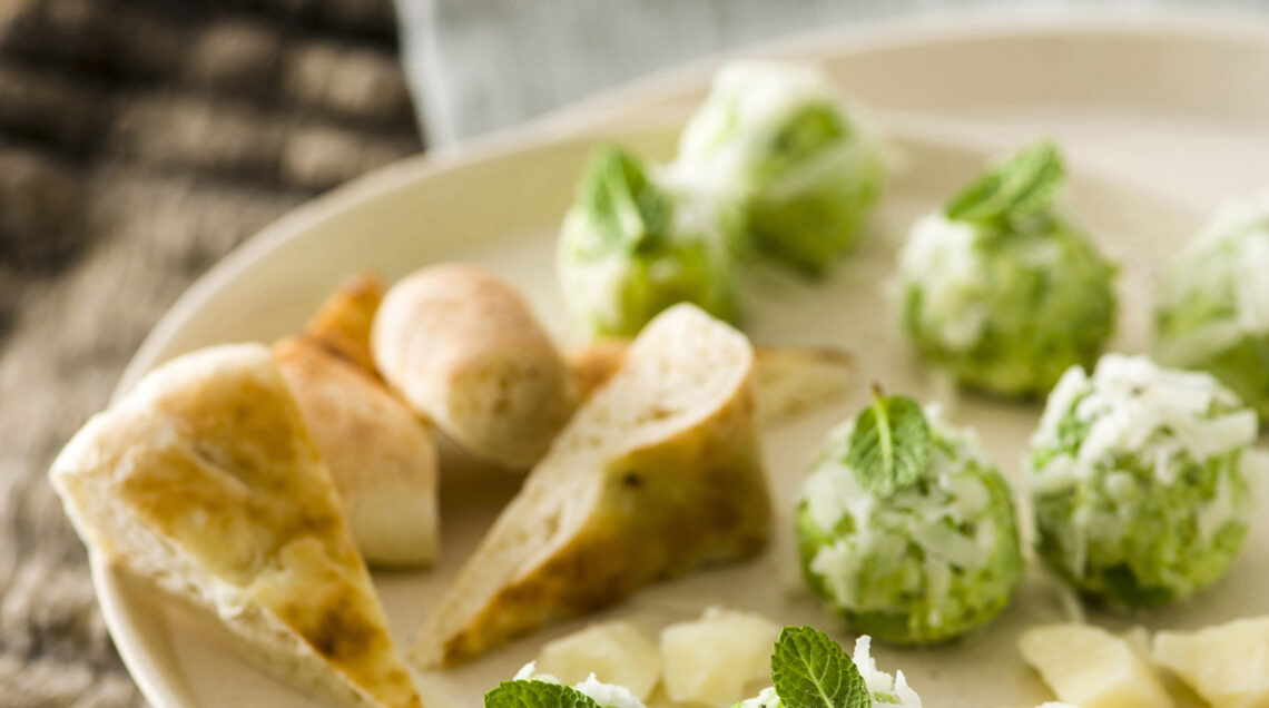 2) Preleva il composto con un cucchiaino, crea tante palline, grandi quanto una noce, e passale nel pecorino rimasto che avrai grattato con la grattugia a fori grossi. Fai riposare in frigorifero per mezz'ora. I bocconcini di pecorino e fave sono pronti, decora con le piccole foglioline di menta rimaste e porta in tavola.