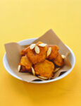 6. Una volta formate le caramelle, adagiale su una leccarda ricoperta di carta forno e spennellale con la vinagrette. Inforna a 180° per 20 minuti, fino a che le tue caramelle ripiene di Parmigiano Reggiano e pere saranno perfettamente dorate.