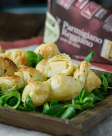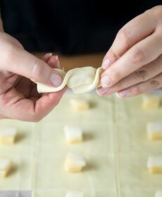 5. Richiudi la sfoglia in modo da formare una caramella, oppure se preferisci richiudi la pasta intorno al Parmigiano in modo da creare dei cubi.