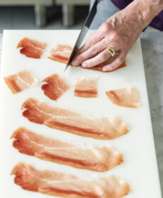 Nel frattempo tagliate lo speck a quadrati della dimensione delle patate più grandi.