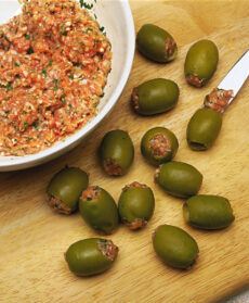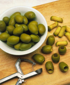 Per denocciolare le olive usate un coltellino a lama liscia, affilata e sottile in modo da asportare la polpa senza romperla e formare delle striscioline a spirale. All'interno si posizionerà la pallina di ripieno freddo o tiepido, attorno a cui si avvolgerà piano piano la spirale di oliva.