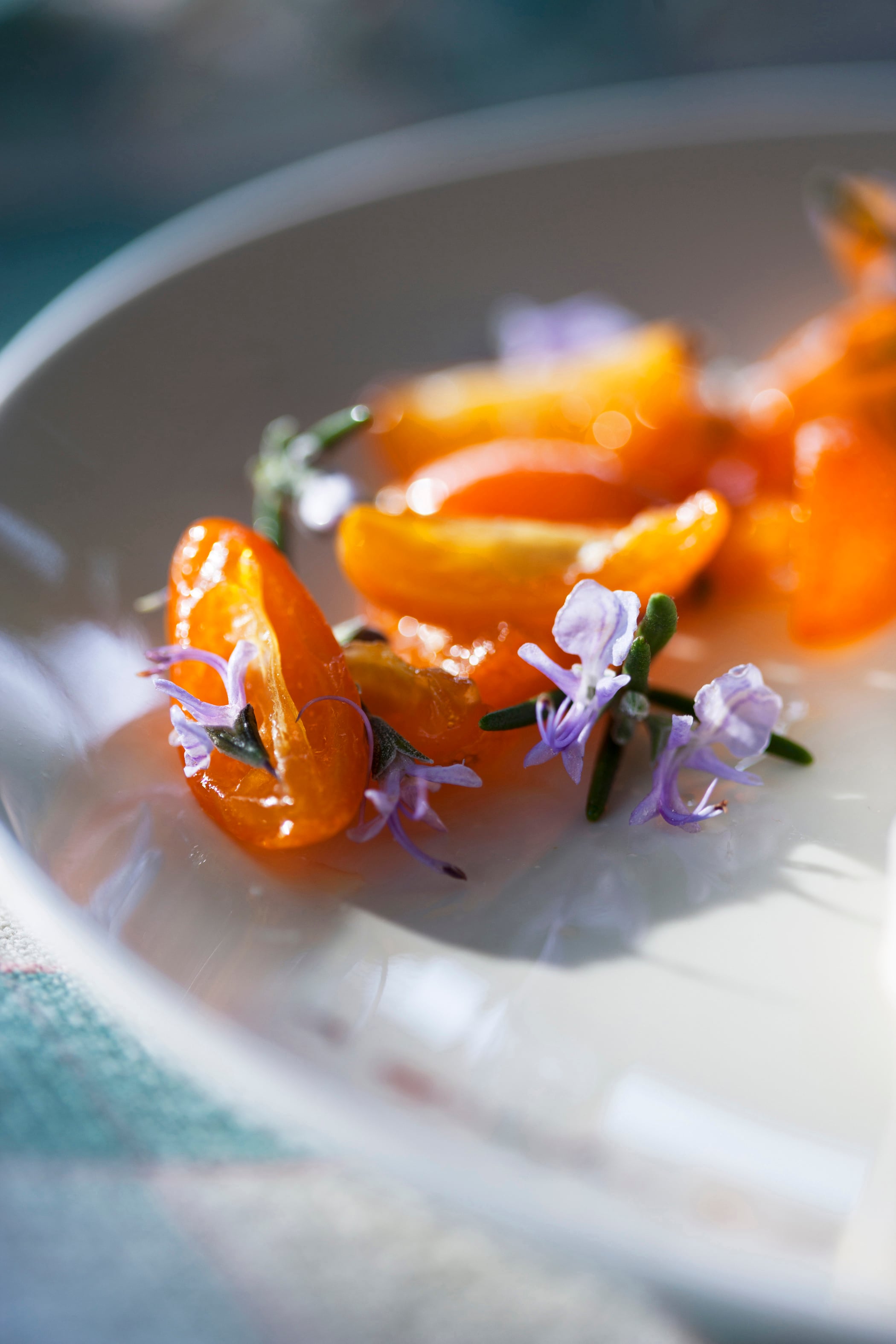 4) Scola i kumquat, tagliateli a metà e cuocili per una decina di minuti in un pentolino con una tazzina di acqua, lo zucchero e il rosmarino.