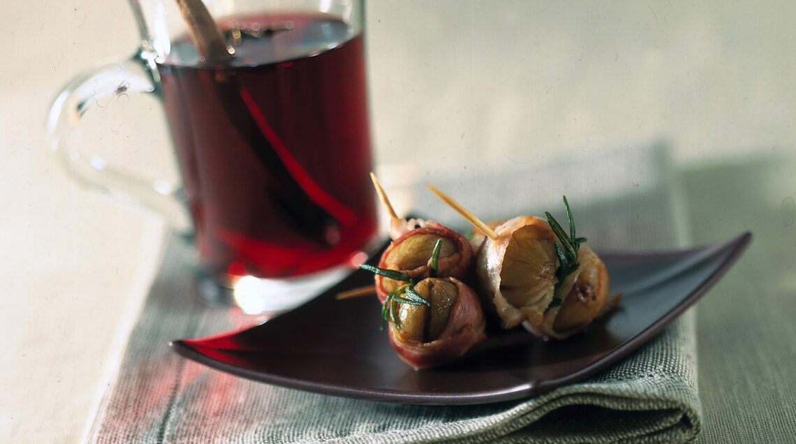 Servi le castagne al rosmarino con un bel bicchiere di vin brulè. Per prepararlo porta ad ebollizione una bottiglia di ottimo vino rosso assieme a 2 chiodi di garofano, un pezzetto di cannella, un seme di anice ed una scorza di arancia o limone. Spegni al raggiungimento del bollore e lascialo in infusione fino al momento di utilizzarlo.
