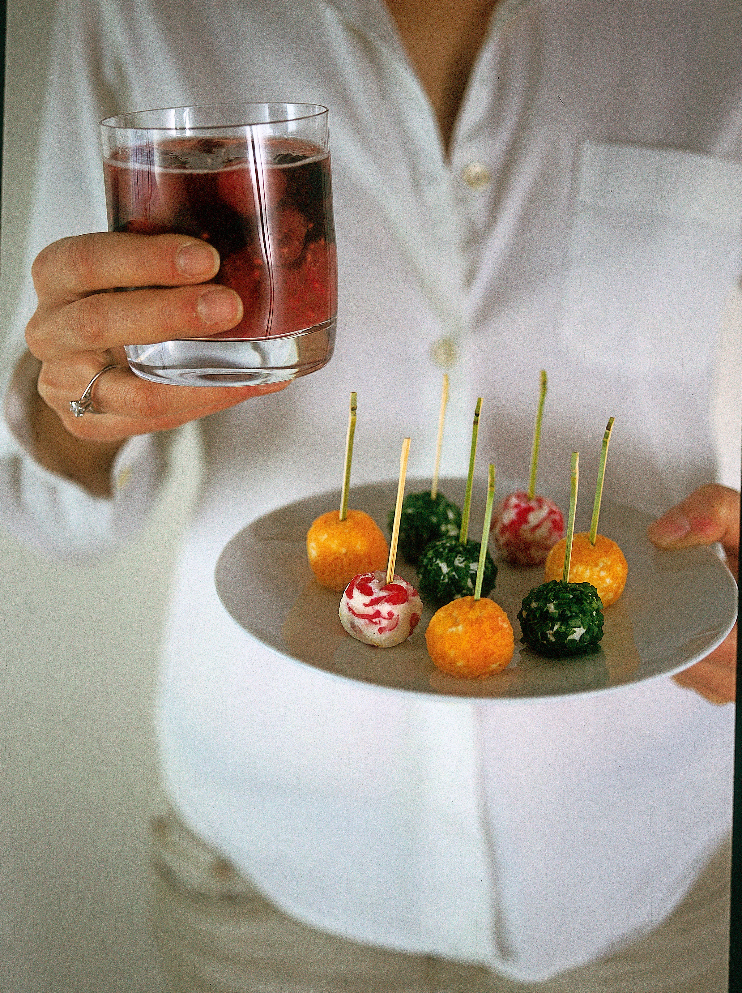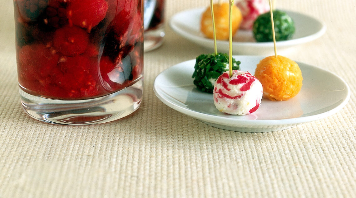 5) Servi i tartufini di formaggio e scagliette di verdure su di un piatto di portata adagiandoli delicatamente e sfruttando i diversi colori per creare una gradevole composizione.