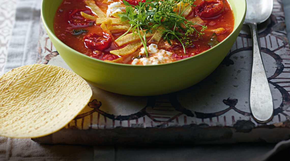 Le tortilla di mais sono una ricetta tipica della cucina tradizionale messicana. Preparate con farina di mais, acqua e sale, i dischi sono cotti in padella, preferibilmente antiaderente o di ferro, ad alta temperatura. Le tortilla, che qui vi proponiamo con una zuppa al pomodoro (variante al pomodoro della tradizionale ricetta toscana della pappa al pomodoro), sono una valida alternativa al pane, possono essere farcite o accompagnare un primo, un secondo o un contorno. La farina di mais fine per tortilla si acquista nei negozi di alimenti sudamericani.