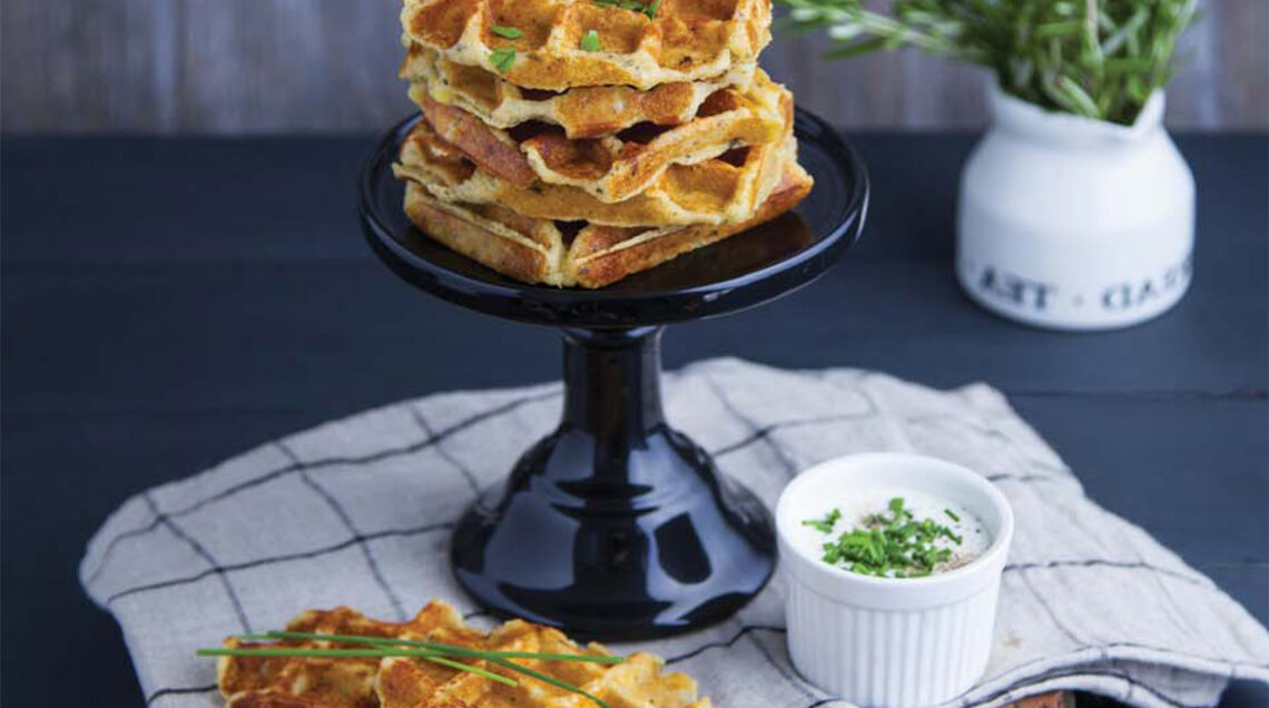 3) Fai scaldare la cialdiera, spennella leggermente le placche con 2 cucchiai di olio e disponi un grosso cucchiaio di impasto in ogni riquadro della piastra. Chiudi la cialdiera e cuoci per circa 5 minuti.