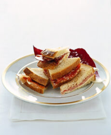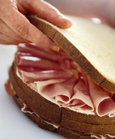 Disponi il cotto tra il terzo e il quarto disco di pane, spalmando i lati interni con la panna. Appoggia il sandwich ottenuto sul precedente.