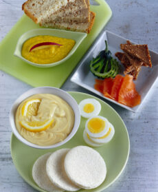 1) Per preparare i rettangoli con tacchino e salsa al curry sbuccia una mela, tagliala in 4 spicchi e togli il torsolo; passa poi al sedano, dividilo a pezzetti e mettilo nel mixer o nel frullatore con la mela, una presa di sale, la maionese, il curry e il succo di un lime; frulla gli ingredienti fino a ottenere una salsa cremosa e spalmala sulle fette di pane.