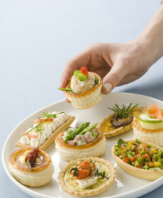 Inizia il lavoro preparando la pasta brisée per la ricetta delle tartellette milleforme. Metti in una terrina 250 g di farina, 125 g di burro ammorbidito e tagliato a pezzi e 1 pizzico di sale. Lavora gli ingredienti fino a che il composto non si presenta in briciole.