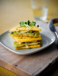 2) Farcisci e servi. Stendi su 2 fette di pancarré per tramezzini uno strato abbondante di crema di pollo e uova; copri con le fette di pane rimaste e trasferisci i sandwich ottenuti in frigo per 2 ore; quindi tagliali per ottenere prima dei quadrati e poi dei triangoli. Rifinisci i lati dei tramezzini di pollo e uova con un poco di paprika dolce e servi.