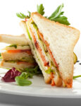 1) Prepara gli ingredienti e la farcitura per i tramezzini. Cuoci 100 g di petto di pollo su una piastra di ghisa e lascialo raffreddare. Immergi le uova in un pentolino con acqua fredda, porta a bollore e cuoci 8-10 minuti. Scolale, picchietta il guscio leggermente e immergile in acqua fredda per 10 minuti; quindi sgusciale, affettale e lasciale raffreddare. Dissala bene i capperi. Sminuzza un filetto d’acciuga. Raccogli tutti gli ingredienti nel boccale del mixer, aggiungi la maionese e frulla per ottenere un composto cremoso.