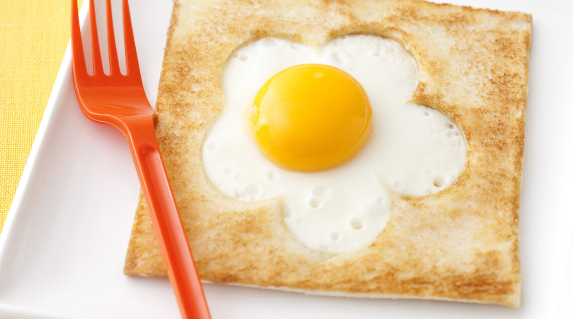 3) Girate le fette di pane e sgusciatevi le uova al centro: cuocete per 3-4 minuti, quindi salate e servite.