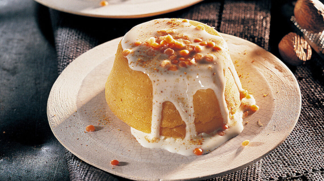 3 Versate il composto in 4 stampini antiaderenti ben imburrati e cuocete a bagnomaria nel forno caldo per 30 minuti. Lasciate riposare per qualche minuto, capovolgete gli stampini sui piatti, nappateli con la besciamella al curry e serviteli ancora caldi.