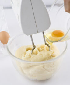 Versate 200 ml di acqua in una casseruola, unite il burro e 1 cucchiaino da caffè di sale e portate a ebollizione, mescolando, finché il burro si sarà sciolto. Abbassate la fiamma, aggiungete la farina, tutta in una volta, mescolate e cuocete, sempre mescolando, finché la pasta si stacca dalle pareti della casseruola.