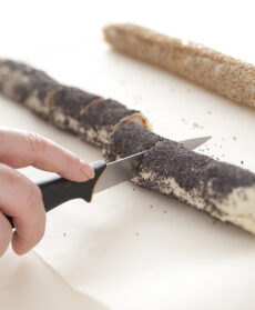 Sgusciate l'uovo in una ciotola, sbattetelo con una forchetta e spennellate la superficie dei rotoli appena preparati. Spolverizzate il rotolo ai wurstel con i semi di papavero e quello alla salsiccia con i semi di sesamo. Tagliate i rotoli a tronchetti della lunghezza di circa 4 cm e disponeteli man mano sulla placca foderata con carta da forno bagnata e strizzata; trasferite la placca in forno e cuocete a 200° per 12-15 minuti. Togliete i salatini, lasciali intiepidire e servite.
