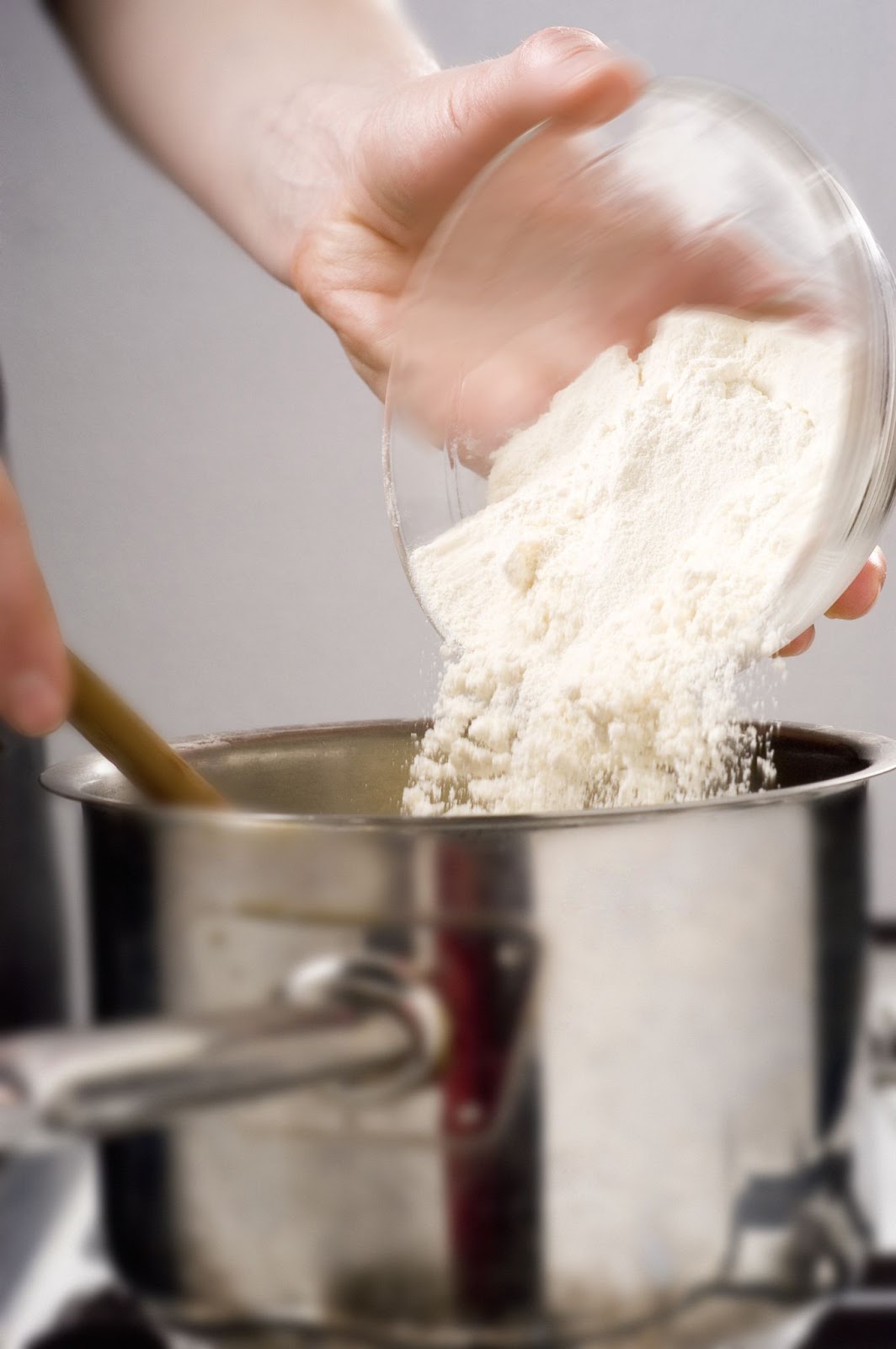 1) Mettete al fuoco in una casseruola un quarto di litro di acqua con un pizzico di sale e il burro a pezzetti; appena si alza il bollore (il burro deve essersi sciolto), unite in un colpo solo la farina e mescolate energicamente con un cucchiaio di legno.