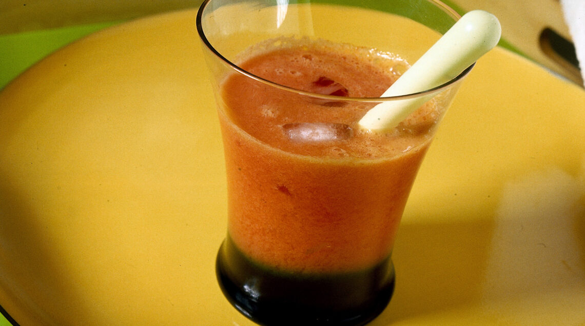 Carote, fragole e arance danno vita a un drink rinfrescante e salutare, perfetto per affrontare il caldo estivo