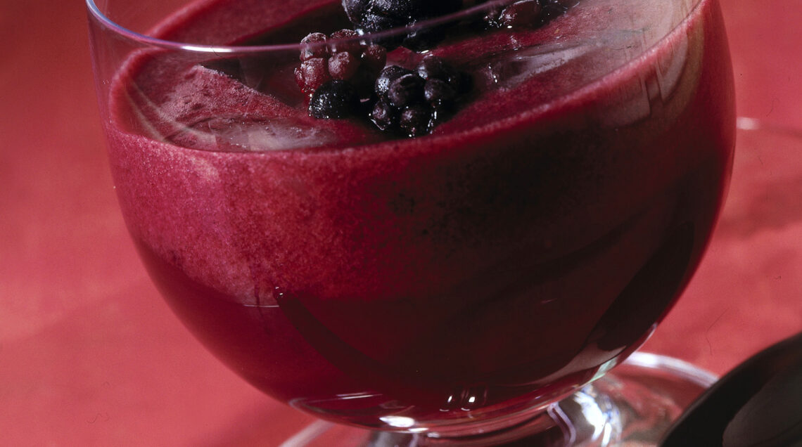 2) Frulla il succo ottenuto con qualche cubetto di ghiaccio e servi nel bicchiere.
