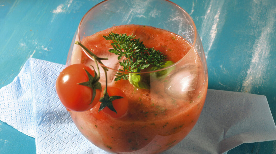 1) Scotta 6 grossi pomodori per 10 secondi in acqua bollente e falli subito raffreddare sotto l'acqua fredda.
