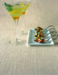 4) Servi il tè freddo al basilico. Per un aperitivo sfizioso portalo in tavola accompagnato da deliziosi bocconcini di focaccia farciti con crema di yogurt e gamberi.