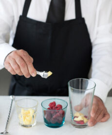La ricetta del Berry breeze inizia con il taglio dell’ananas. Prendi un ananas, taglialo a cubetti ed aggiungi i lamponi già lavati.