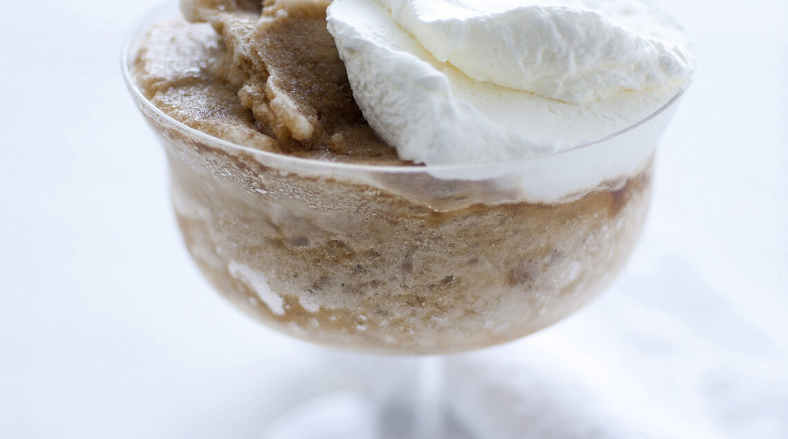 2) Al momento di servire monta la panna con lo zucchero a velo, suddividi la granita in 4 coppe, disponi sopra la panna e servi la granita siciliana con panna.